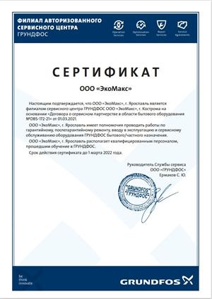 Сертификат соответствия стандартам Grundfos